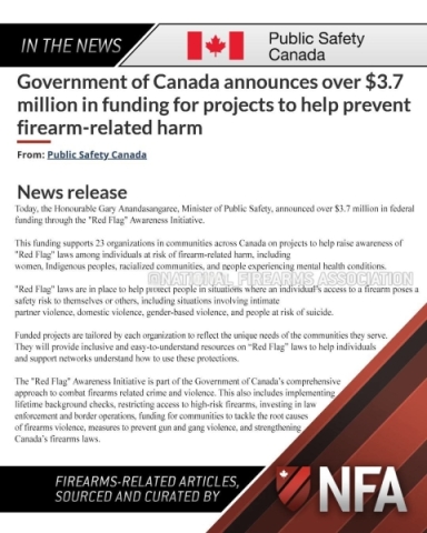 USPA NEWS - The Government of Canada announces over $3.7 million in funding for projects to help prevent firearm-related ha...